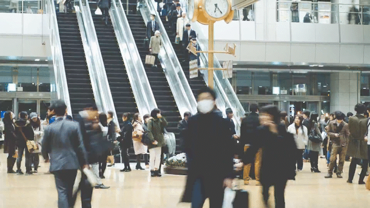 Shots of people moving underground, rush hour through the world’s largest train station and city lights from a major Japanese city.